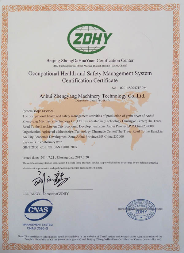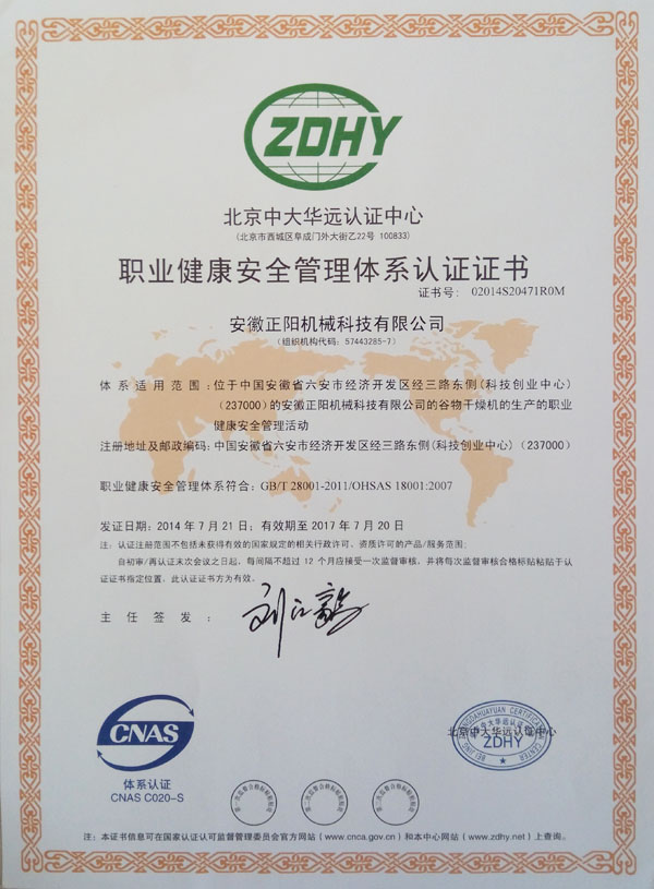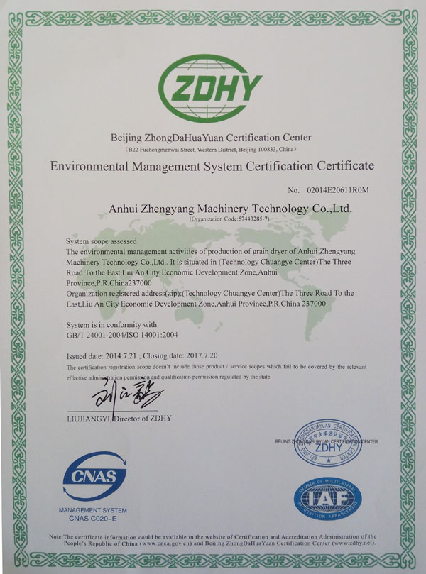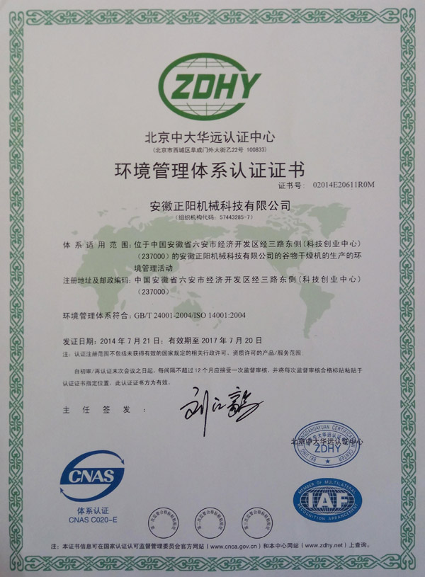 環境管理體系認證證書