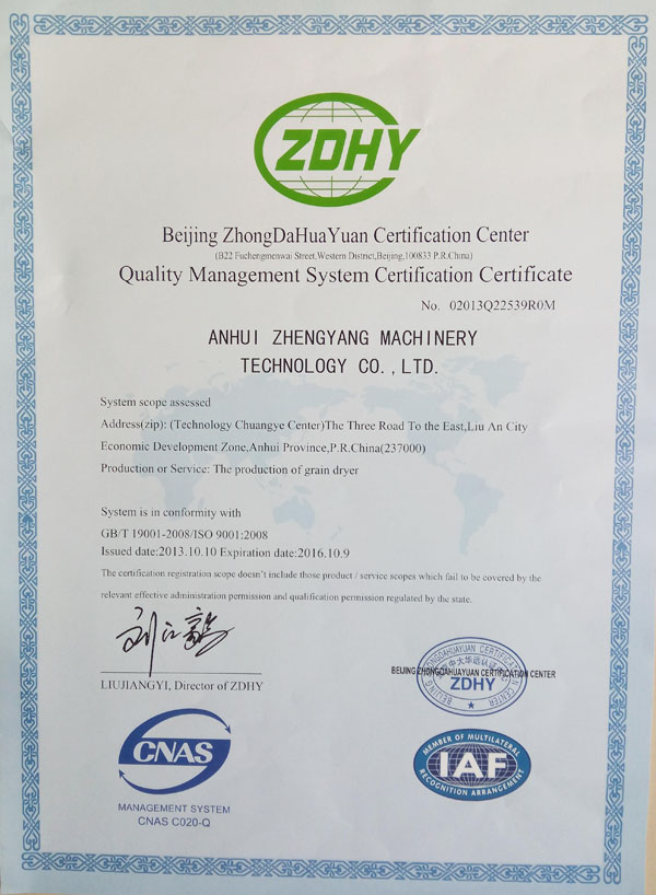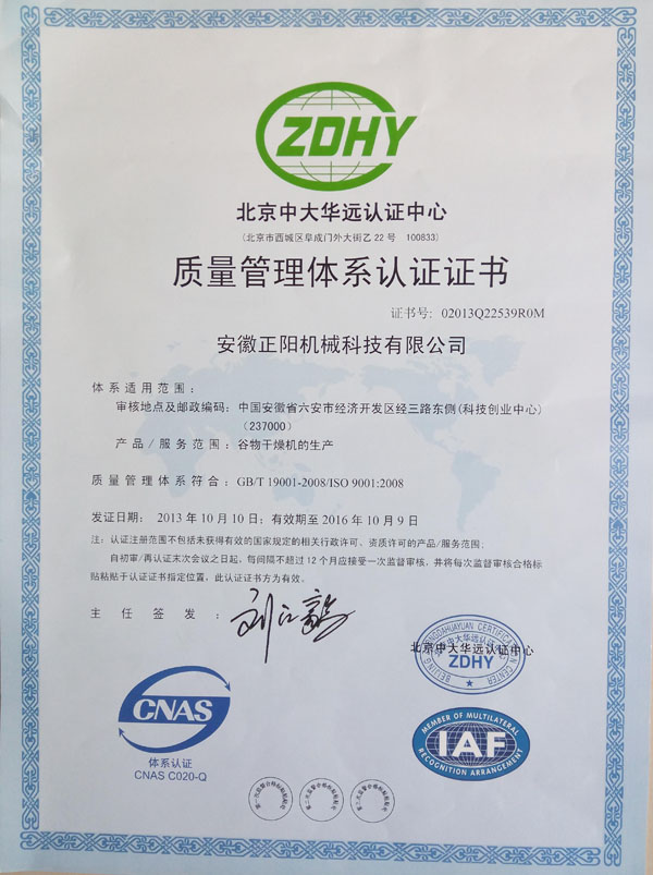 質量管理體系認證證書