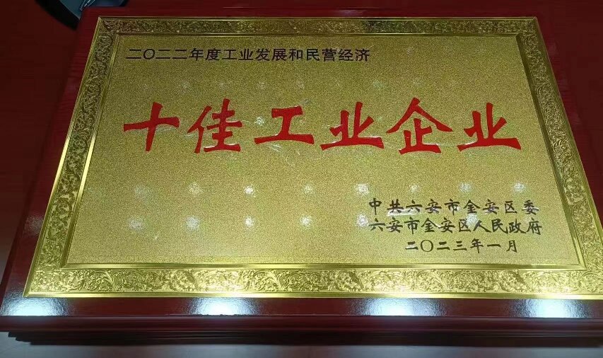 正陽機械獲中共六安市金安區委、六安市金安區人民政府授予的2022年度工業發展和民營經濟“十佳工業企業”稱號。